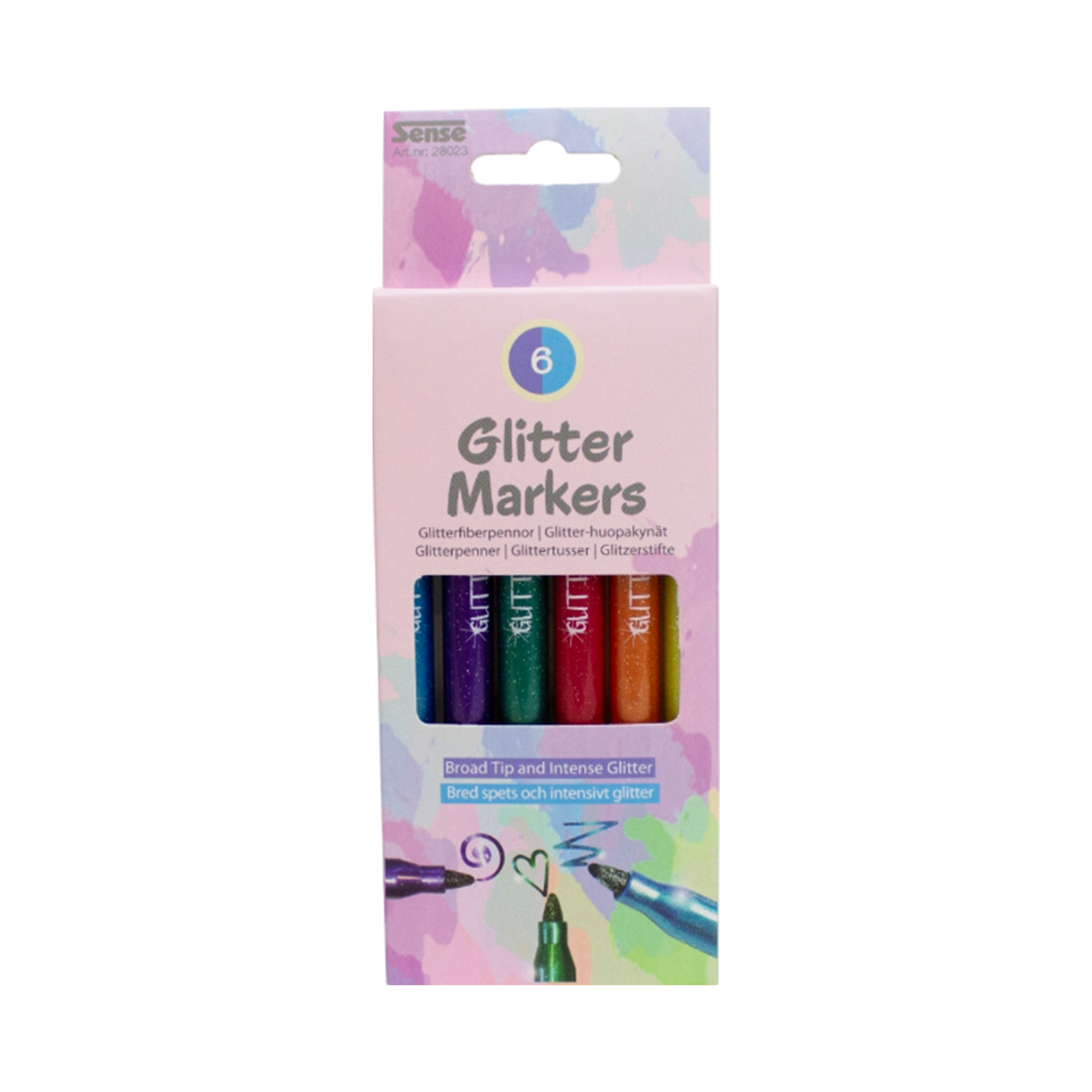 6 st gnistrande glitter-fiberpennor.
