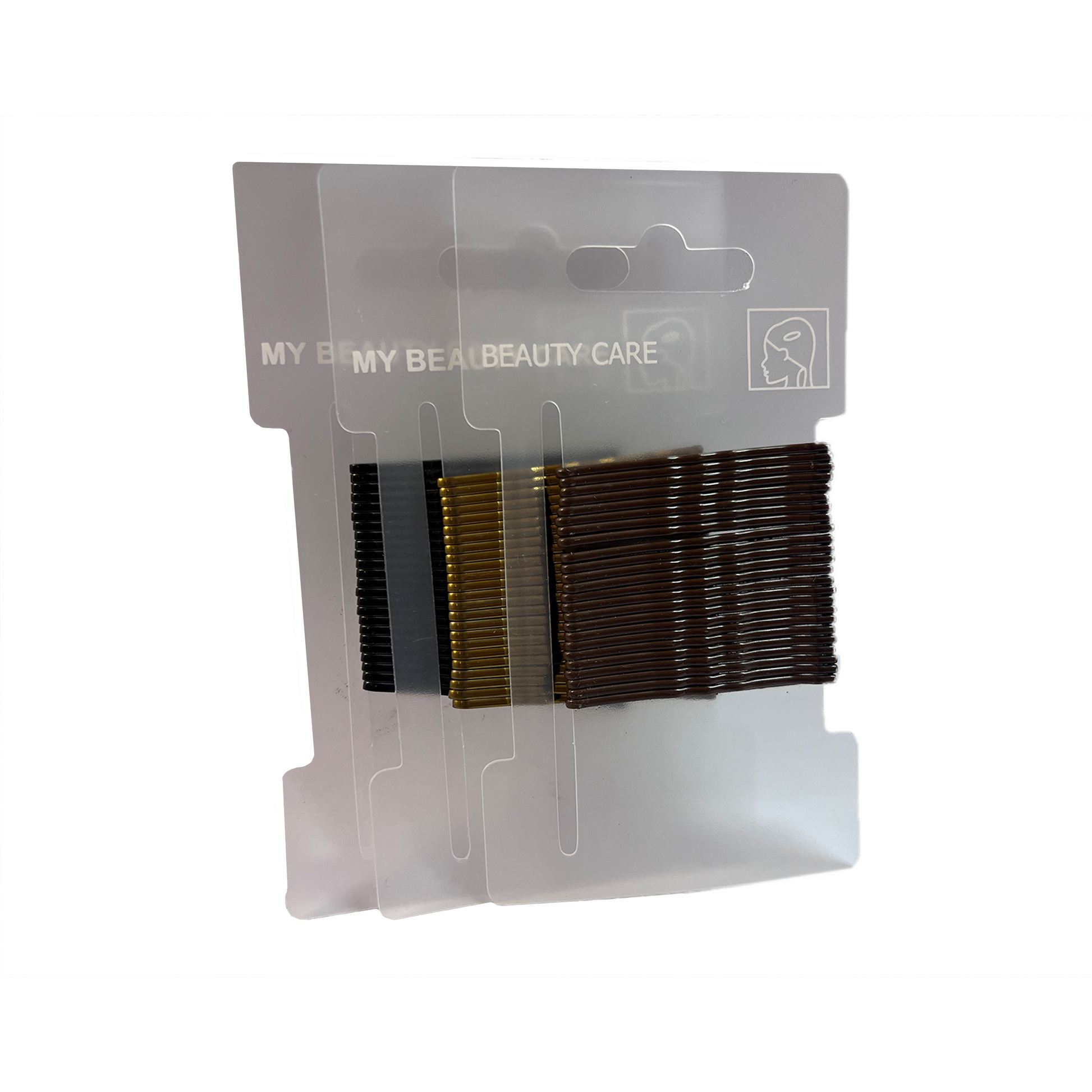 24 st hårnålar. Ca 4,5 cm långa. Brun.