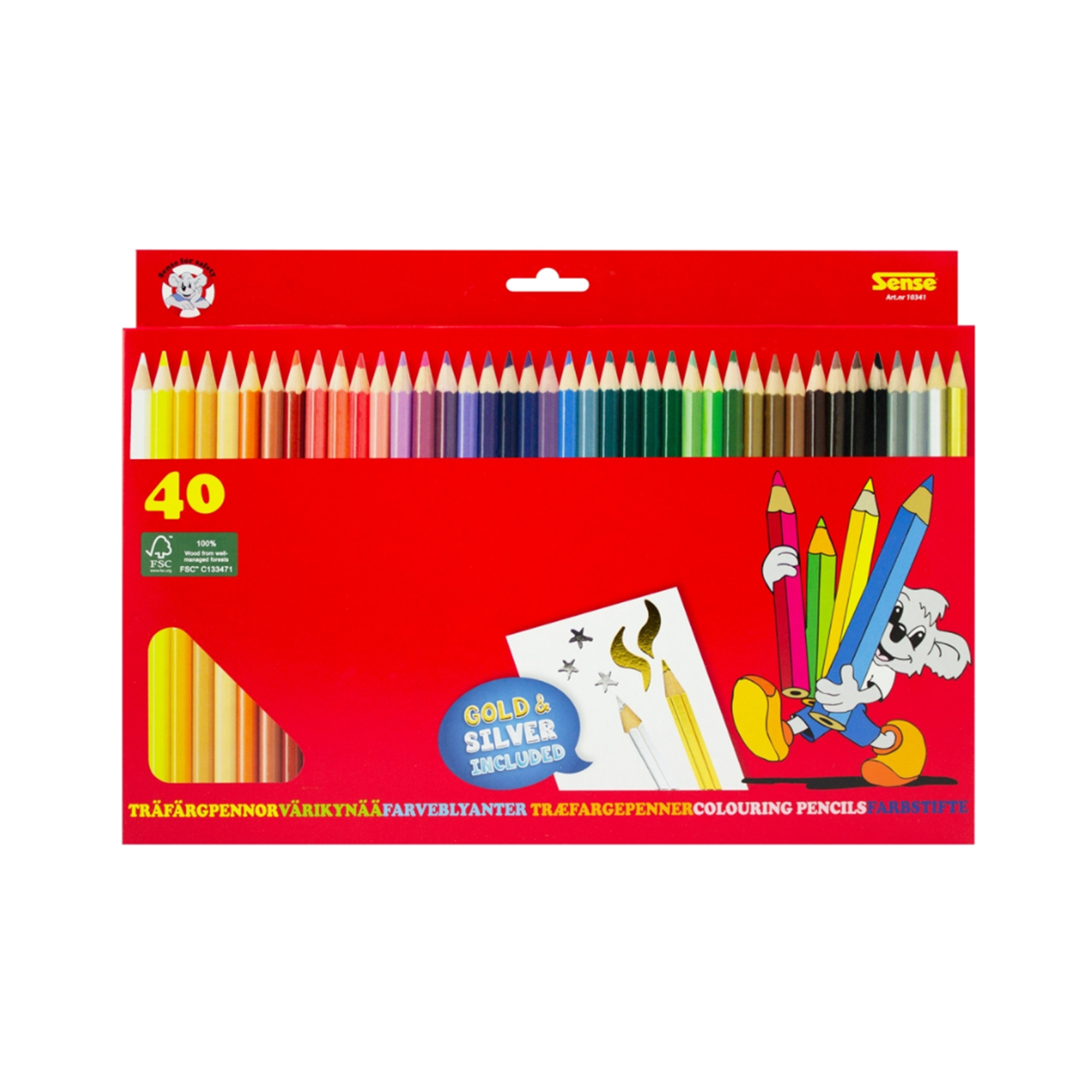 Förpackningen innehåller 40 stycken pennor i olika nyanser där även 2 metallic pennor i guld och silver ingår.