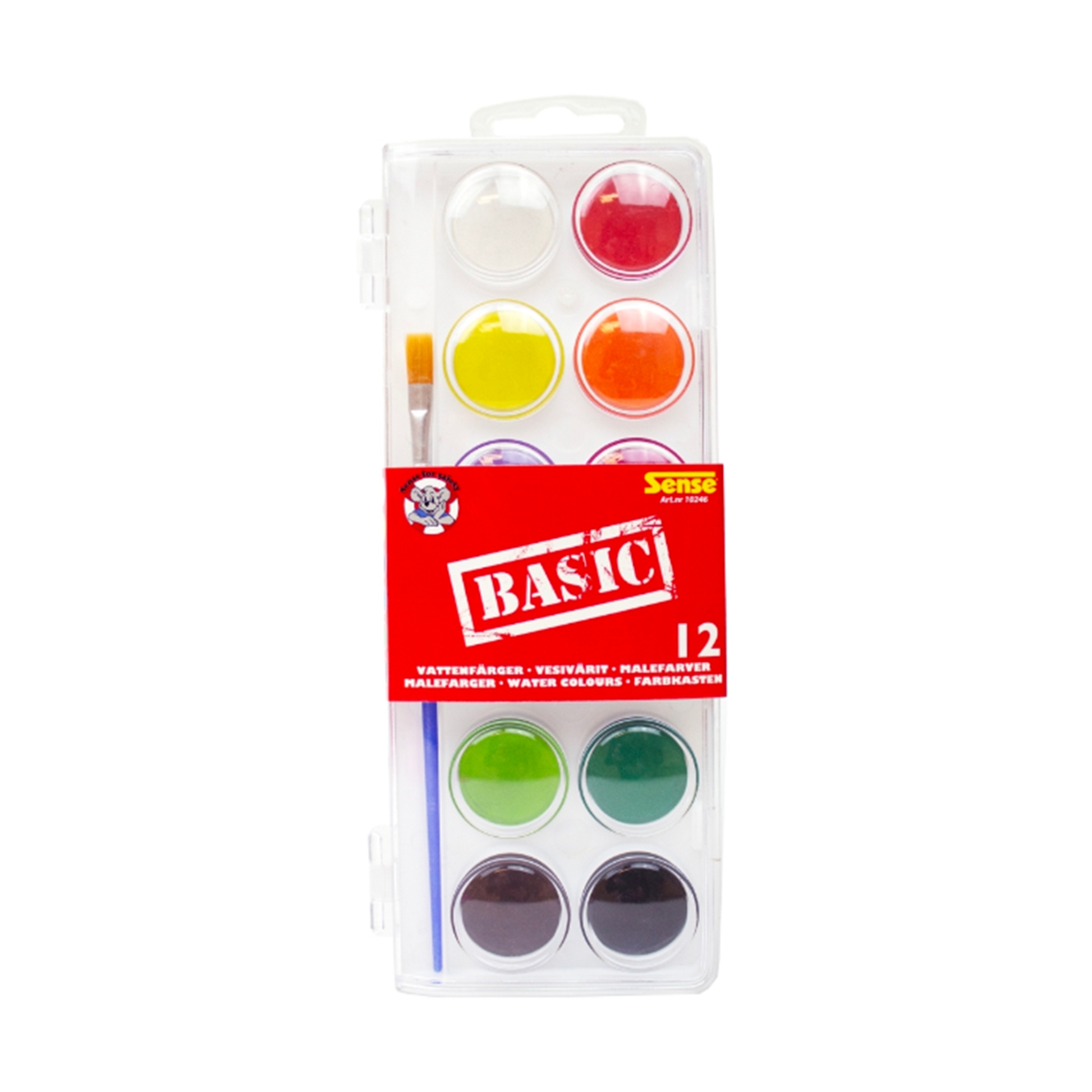 Vattenfärglåda bestående av 12 vattenfärgskakor från Sense "Basic" sortiment.