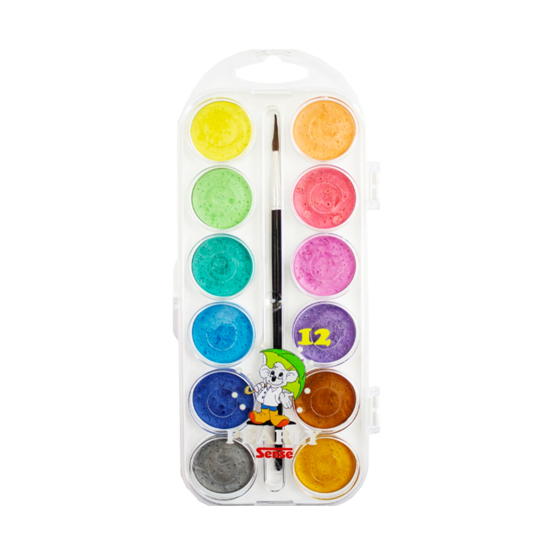 Vattenfärglåda med 12 färger med effekt av pärlemor.